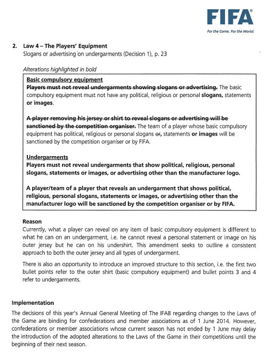 (Law 4 The Players' Equipment) to have numbers on the players' Jersey.