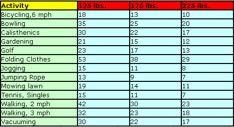 Your Weight Activity 125 pounds - 175 pounds - 225