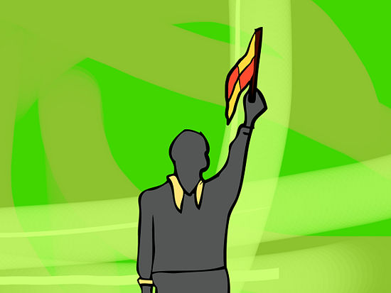 In particular, if he wishes to indicate that a player deserves a yellow or red card,