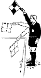 infraction by holding the flag out in front ~ flag held high indicates infraction occurred at far